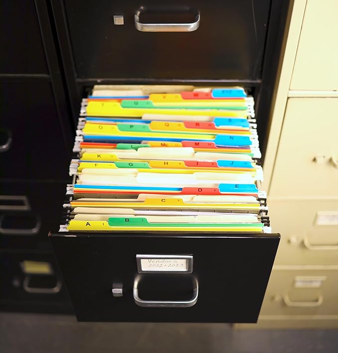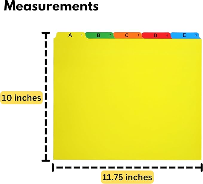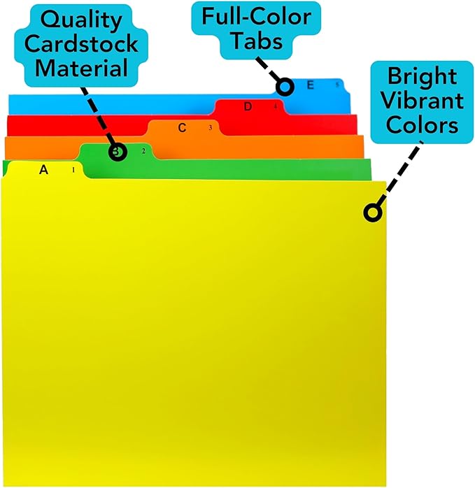- Vibrant Colors: This A-Z file guide set features 5 full colors - yellow, green, orange, red, and blue - for easy organization and identification.