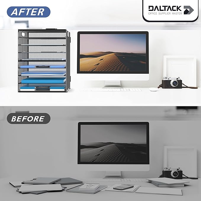 - [Perfect Paper Organizer] The 9-tier paper tray desk organizer has a large capacity for all your office supplies and accessories, such as: letters, paper, printing paper, books, folders, bills, magazines and so on. Keep your desk away from clutter and increase your productivity.