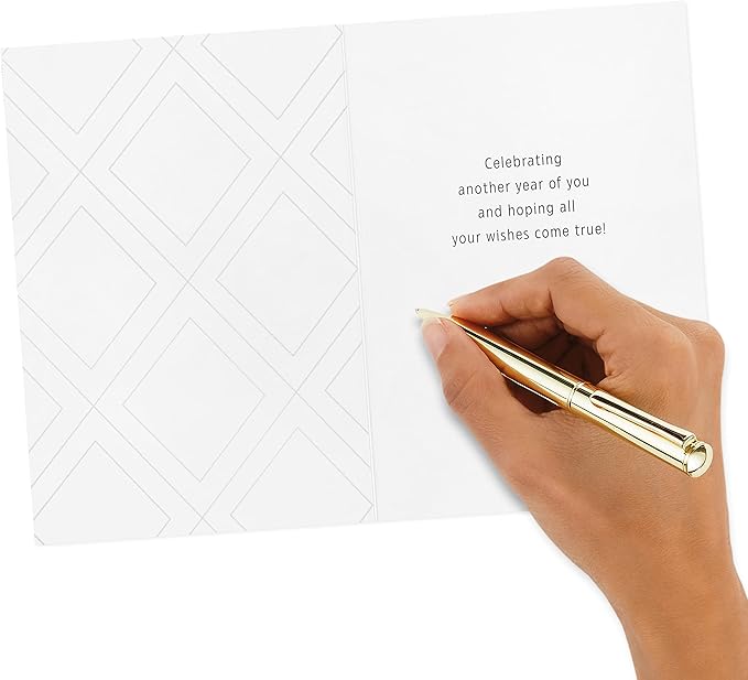 - Festive birthday card assortment features retro inspired party designs including glitter, balloons, and, disco balls accented with gold foil.