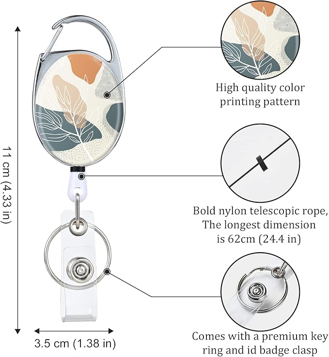 Badge Reels Retractable,Double Sided Color Print Pattern Retractable Badge Holders,with Retractable Keychain, Badge Clip and Key Ring,Durable Nylon Retractable Rope,Bohemian Leaf