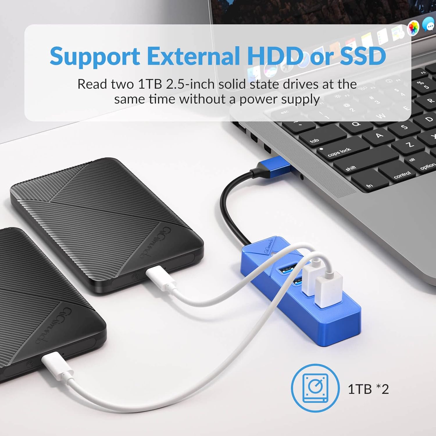 - 5Gbps 4-Port USB 3.0 Hub - The USB 3.0 hub delivers data transfer rates up to 5Gbps(Note: USB Hub is designed for data transfer. Charging is not supported.)