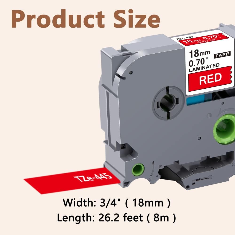 - Product features : Split back, water resistant, fading resistant, abrasion resistant, temperature resistant, strong adhesive. This compatibel label tape 18mm TZe-445 White on Red is suitable for indoor and outdoor use