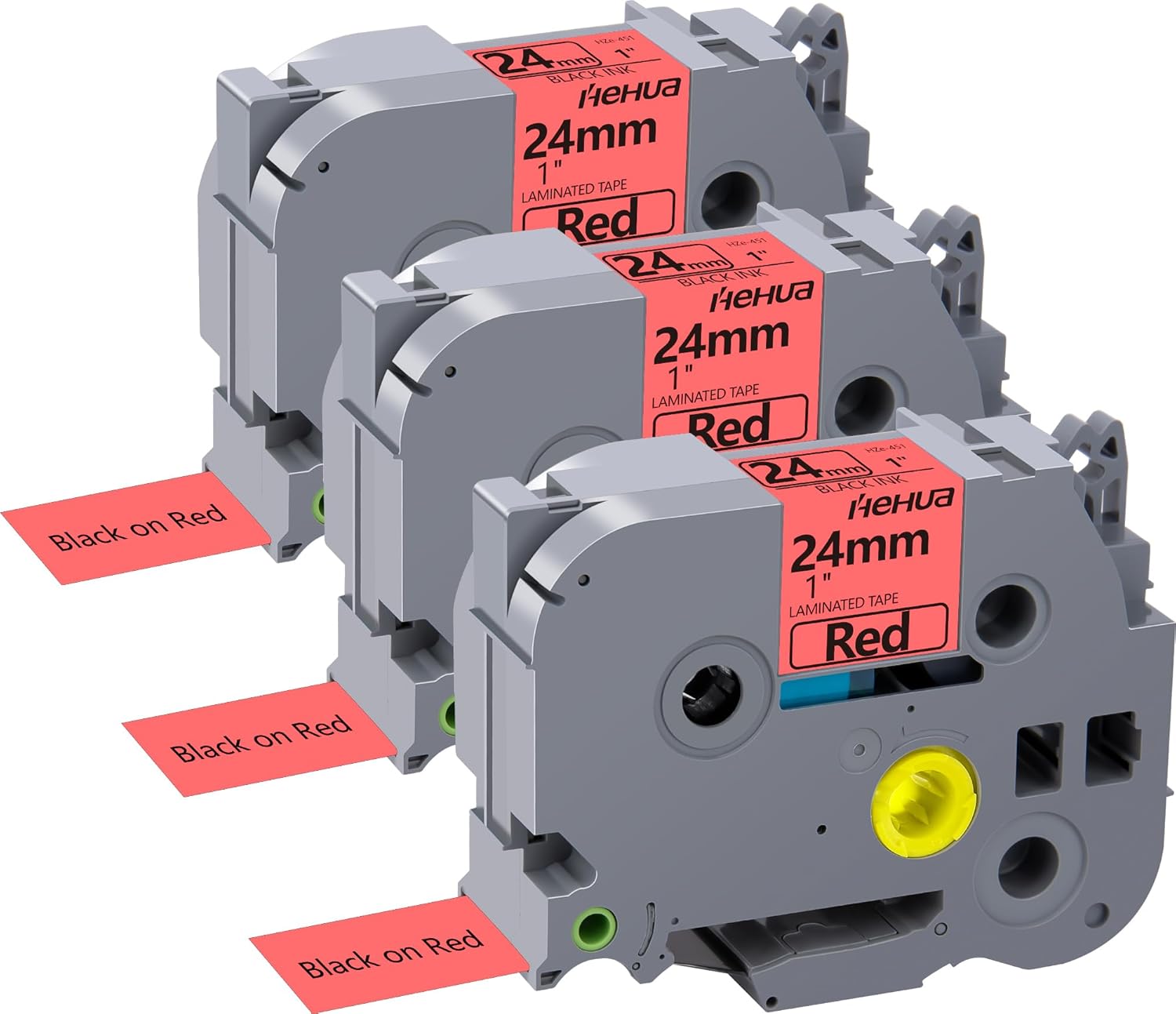 Hehua 24mm 0.94 Black on Red Laminated Tape Compatible for Brother P-Touch TZe-451 TZe451 TZ-451 TZ451 Label Maker Tape for Ptouch PT D600 D610 P710BT, 1'' x 26.2ft, 3 Pack