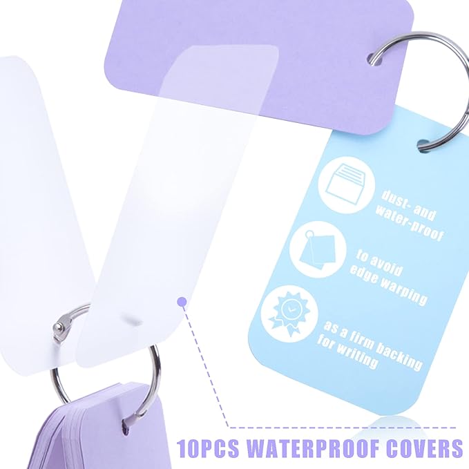 - Space Saving – Includes 250 blank index cards (2.2” x 3.5”) in 5 colors (50 per color), 10 waterproof covers, and 5 durable binder rings. The compact size saves 37% more space than traditional 3” x 5” index cards, making study cards perfect for travel and everyday use