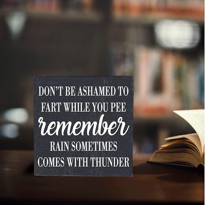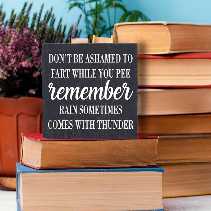Funny Bathroom Decor Desk Decor Wooden Box Sign Rustic Black Wood Block Plaque Box Sign for Home Farmhouse Bar Toilet Washroom Shelf Table Decoration Don't be Ashamed to Fart While Peeing Sign