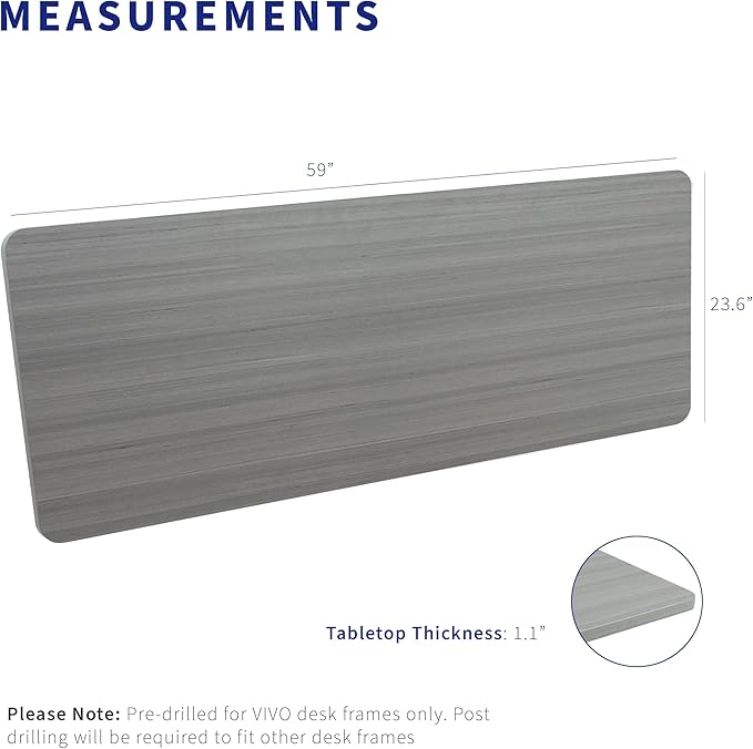 - Compatibility - Fits both manual and electric frames measuring 39" to 58" in length, including VIVO models: DESK-E151EB / DESK-E151EW, DESK-M051MB / DESK-M051MW, DESK-V100EB / DESK-V100EW, DESK-V101EB / DESK-V101EW, DESK-V102E / DESK-V102EW, and DESK-V103E / DESK-V103EW. Please Note: The pre-drilled holes fit our VIVO desk frame models. Pre-drilling will be required to fit most other desk frames.