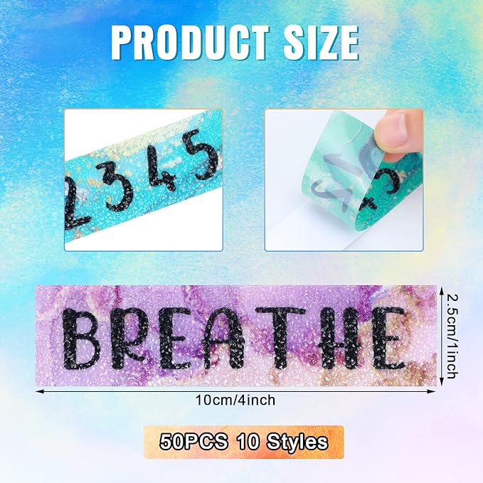 - Beautiful Phone Decoration: adopting pastel colors and multiple words like [CALM], [FOCUS], [BREATHE], etc., the stress stickers can be stuck on the back of your phone as a beautiful phone case decoration, easily catching the eyes of others