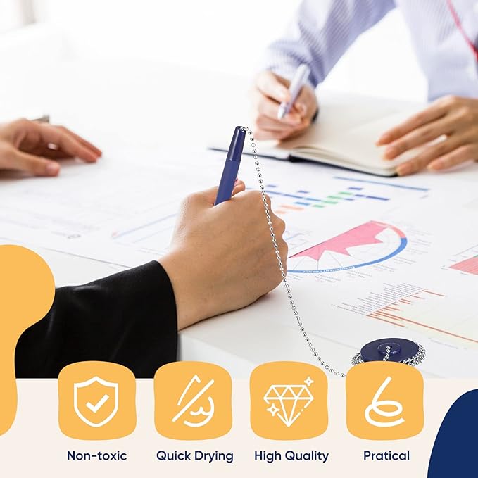 Pasimy Secure Pen with Adhesive Chain and Security Blue Ink Pen Holder for Home Office Supplies(6 Pieces)