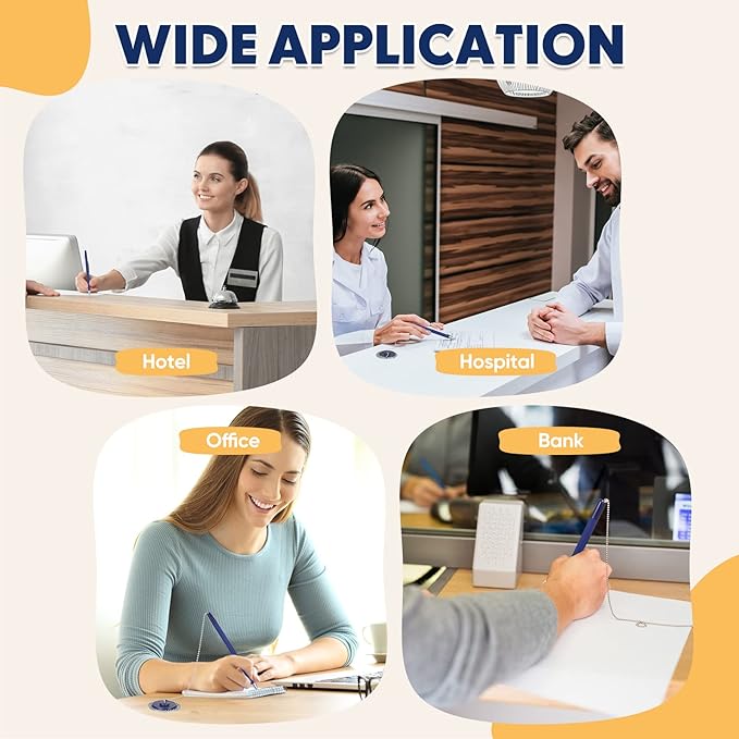 - Chain and Base Design: our pen with chain and base features delicate workmanship, is designed with a chain measuring about 23 inches/ 58.4 cm in length, long enough for most places, and the base is adhesive, you can stick it on the table, allowing you to write freely