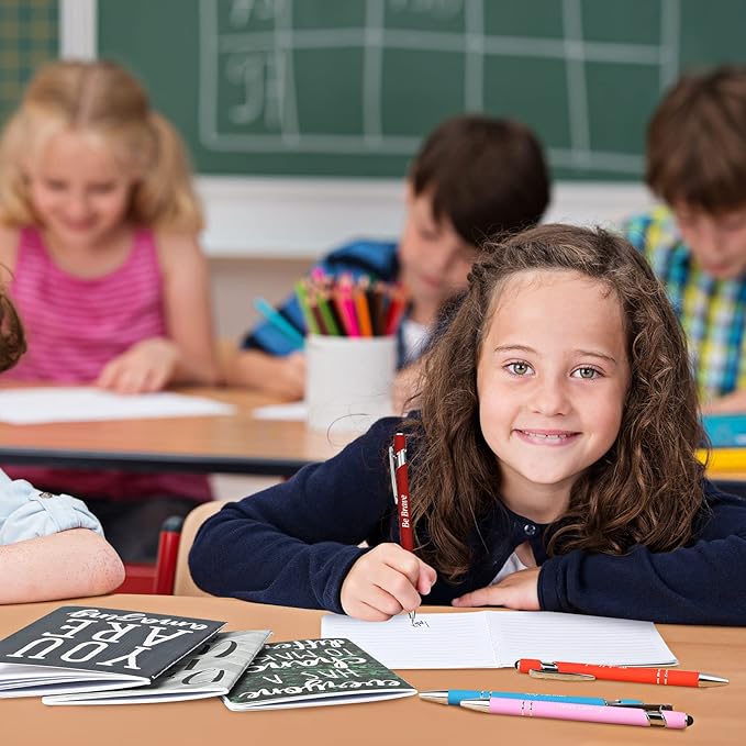 - Motivational Gift Set: the package comes with 32 pieces of inspirational gifts, including 16 pieces of inspirational pens in 8 classic colors and 16 pieces of inspirational mini notebooks in 8 different styles, enough amount can meet your various needs