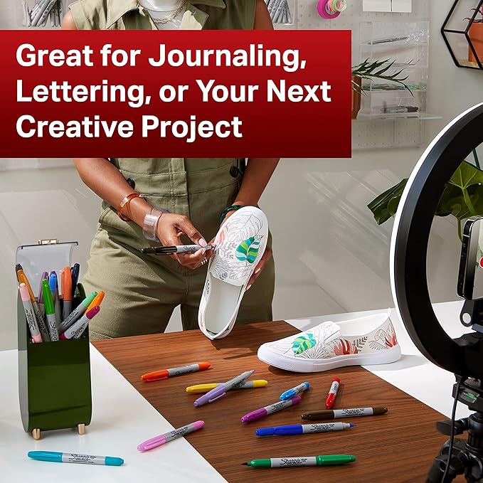 SHARPIE Brush Twin Permanent Marker, Brush Tip Marker and Ultra Fine Tip Marker, Black, 12 Count