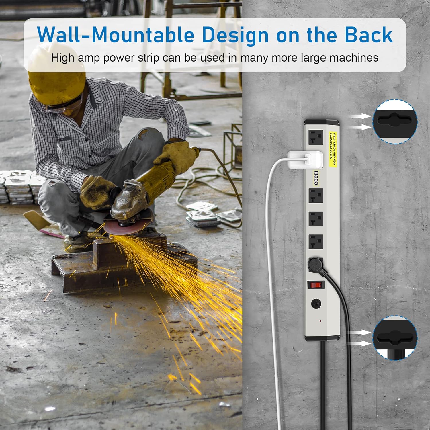 - 20 Amp high amp heavy duty power strip with metal housing, wall mountable and come with 6 outlets design, can be applied to high power industrial equipment.