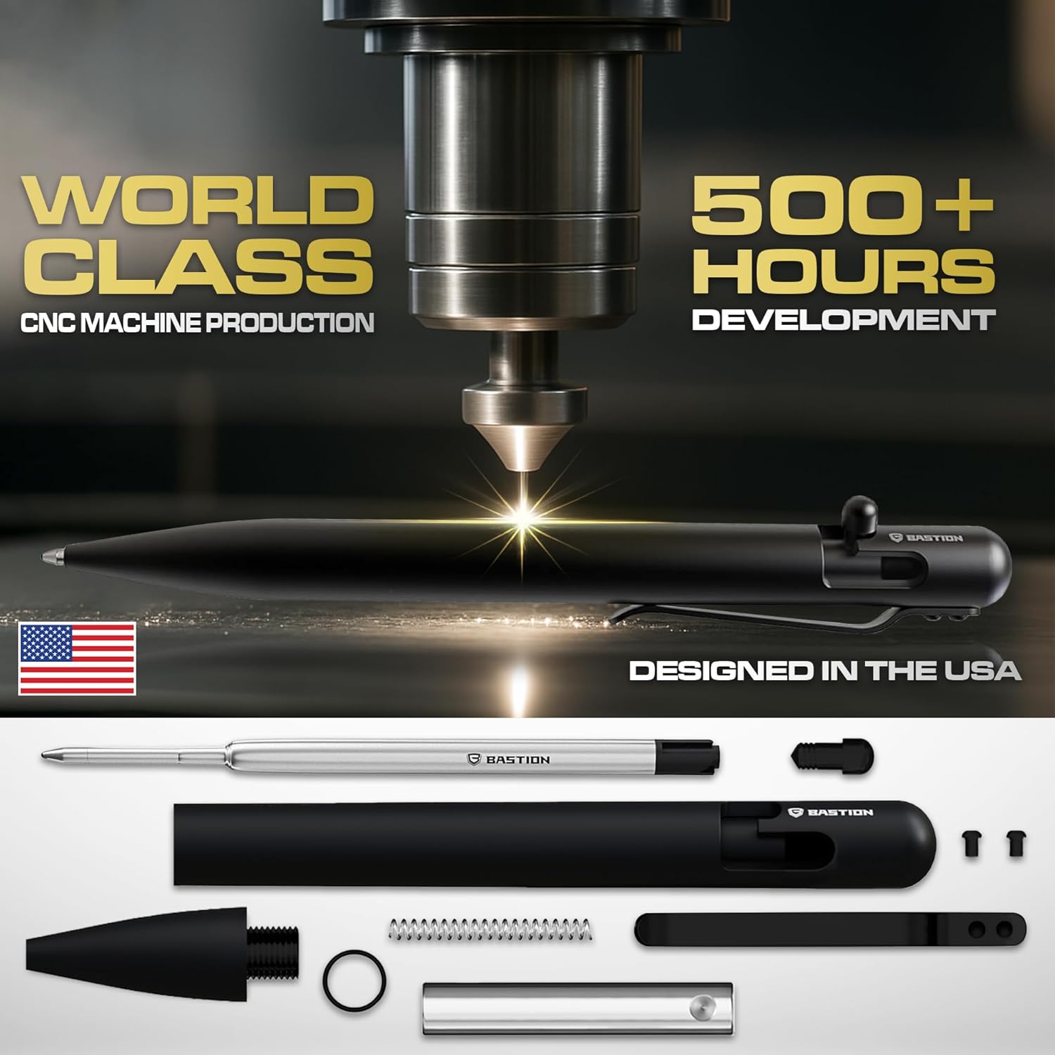 BASTION® Luxury Bolt Action Pen, Durable Professional Ballpoint Pen with Fine Tip, EDC Tactical Pen Ink Refillable Pen - Zirconium Black