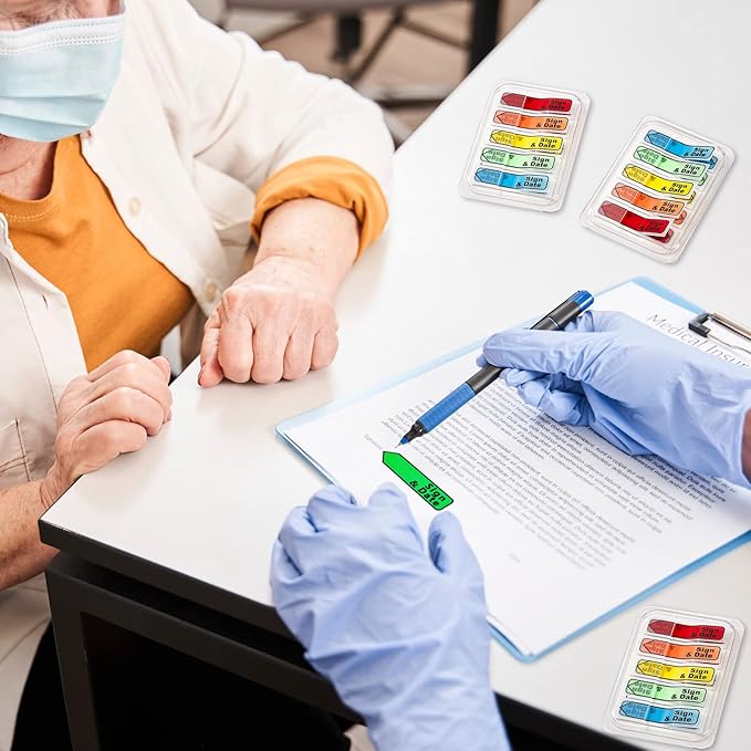 - Catch Your Eyes: printed with noticeable words [Sign Date], the note tabs have neon colors, respectively red, orange, yellow, green and blue, to easily catch your eyes, and to make the important information to stand out