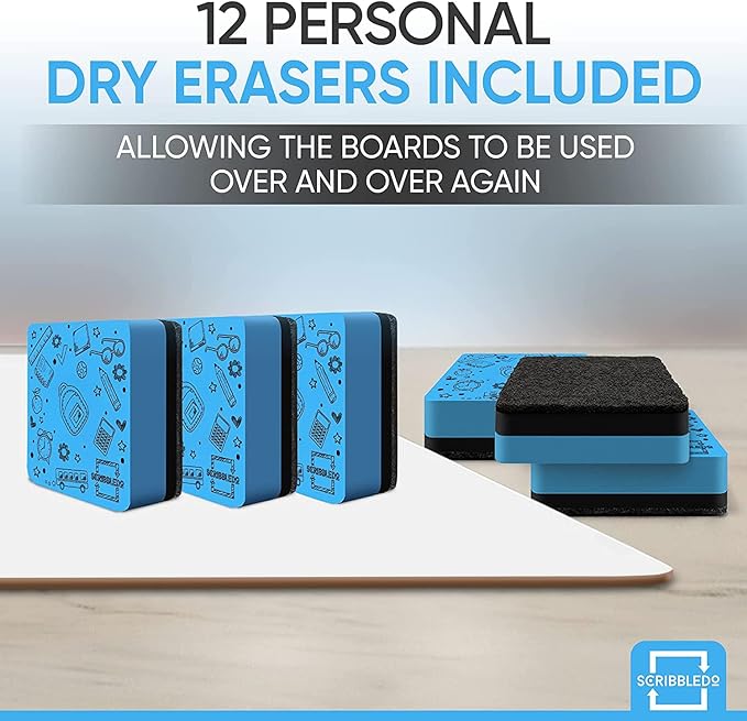 Set of 12 Small White Board Dry Erase Boards Classroom Pack Mini White Boards 9"x12” Double Sided Personal Whiteboards for Students Teachers School Supplies Lapboards l 12 Mini Whiteboard Erasers Incl