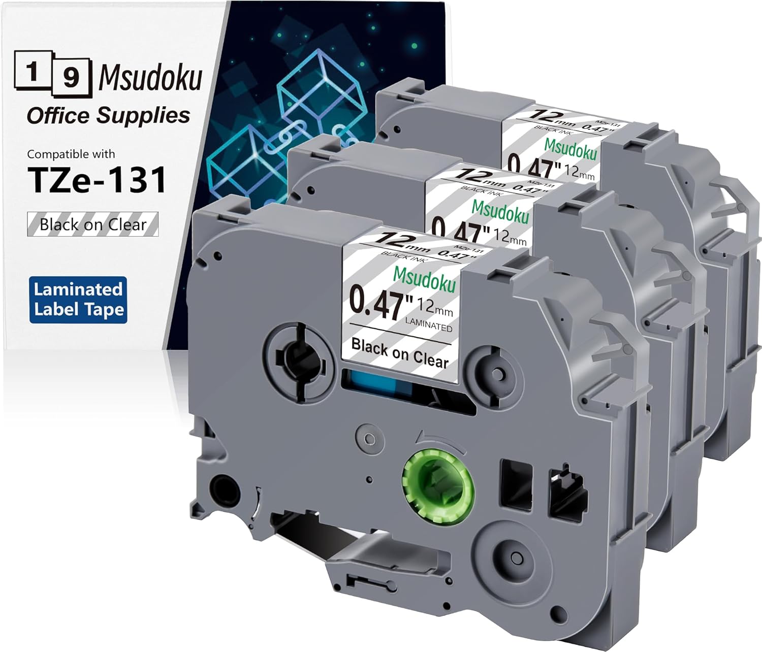 - These compatible for brother label maker tape 12mm 0.47 TZe-131 TZe131 have strong adhesive and no sticky residue when you remove it. The split back design of ptouch label tape 12mm clear tape is very easy to peel off