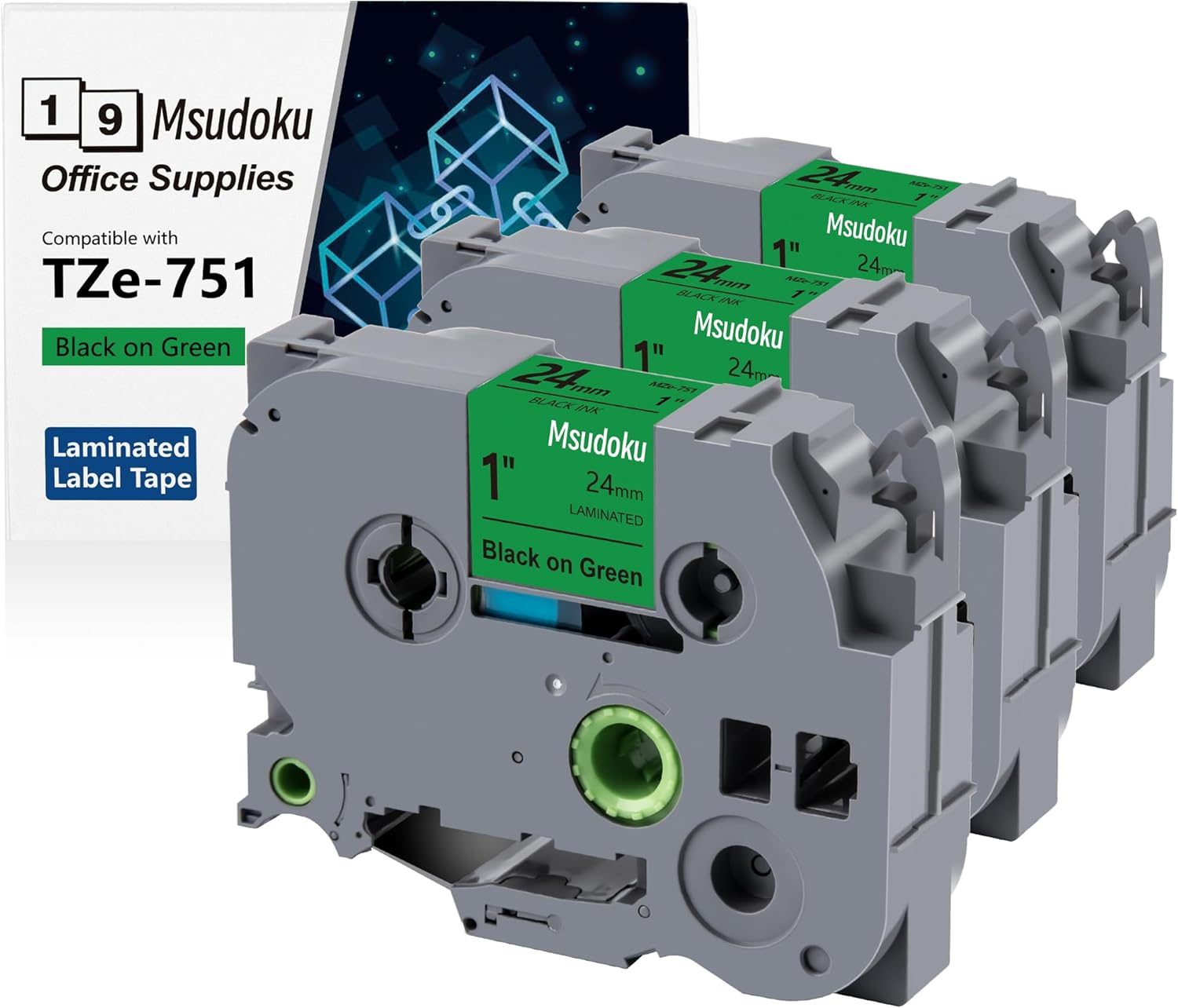 - These compatible for brother label maker tape 24mm 0.94 TZe-751 TZe751 have strong adhesive and no sticky residue when you remove it. The split back design of ptouch label tape 24mm green tape is very easy to peel off