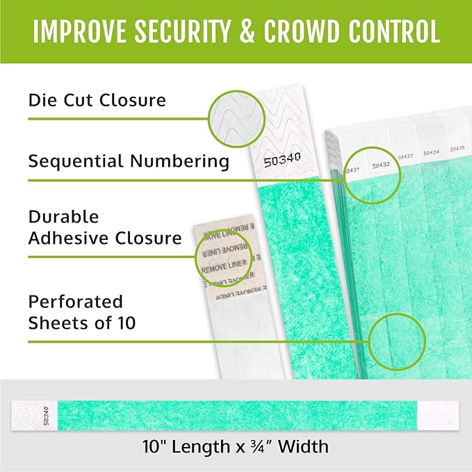 - No Need to Worry About Paper Cuts: Our durable Tyvek bands are soft to the touch and have a smooth cloth-like edge, unlike wristbands made of paper or plastic film (which can cause cuts, scratches, or injury to eyes or skin).