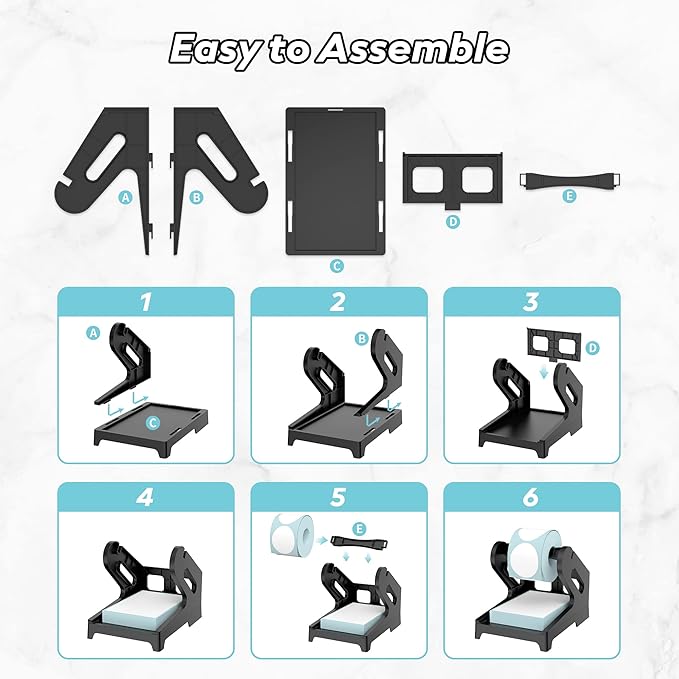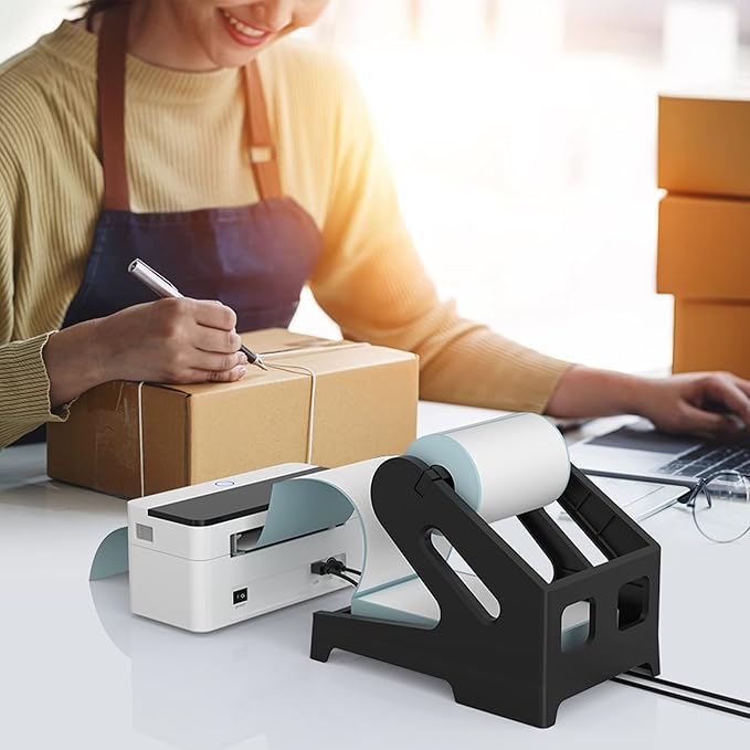 Label Holder Thermal Label Holder for Rolls and Fanfold Labels Shipping Label Stand Desktop Printer Accessory Supplies for Home, Office (Black)