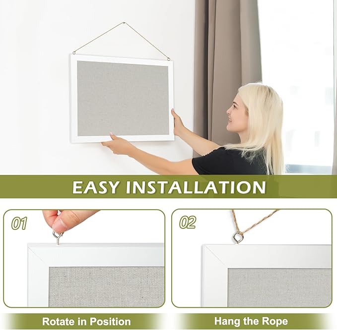 - [Trustworthy Material] -- We use high-fiber linen to make the surface of the bulletin board, which is self-healing and durable. The 0.7" thick white frame is strong enough and lightweight. You are able to hang and remove them without effort.