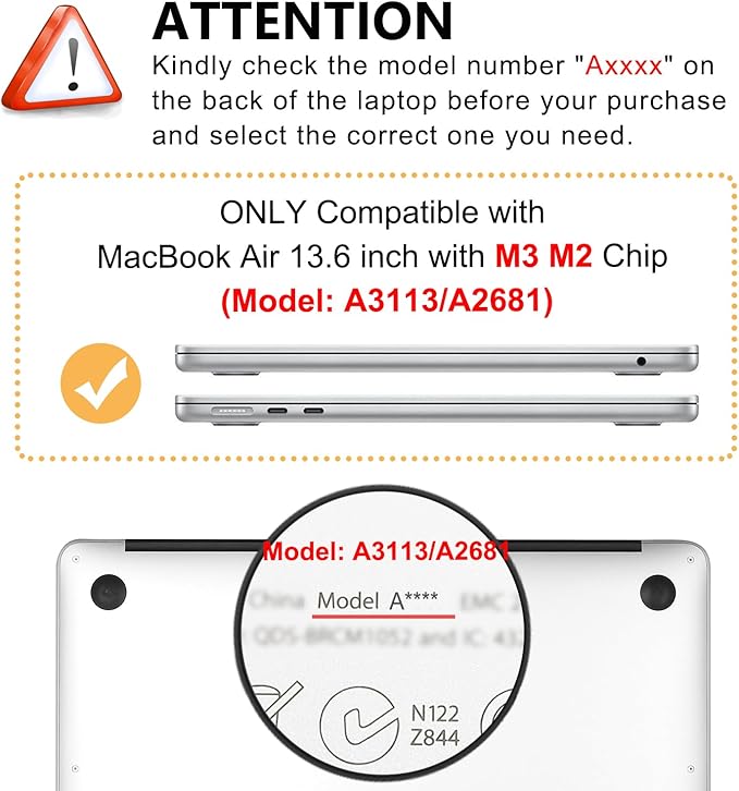- WARNING: The case was designed ONLY to be compatible with 2022 2023 2024 Release Newest M3 M2 MacBook Air 13.6 inch with Liquid Retina Display and Touch ID (Model:A3113/A2681).