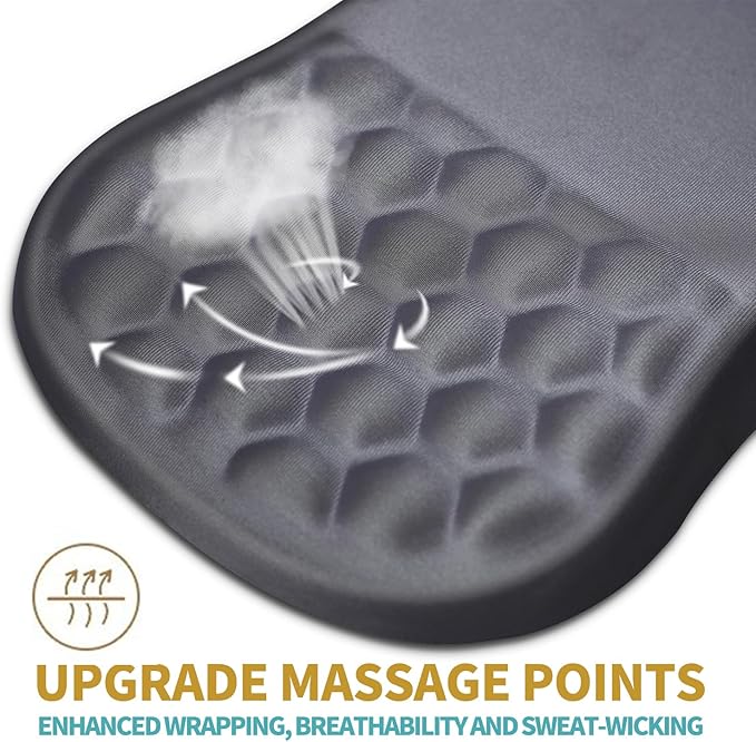 - 【Ergonomic Massage Design】The innovative ergonomic 8-degree slope and massage bump design perfectly support the wrist and palm. Massage bump design can effectively relieve wrist pain and fatigue, improve carpal tunnel syndrome (CTS), strengthen the air circulation between wrist and mouse pad, prevent sweating, and keep your wrist in the most comfortable state.