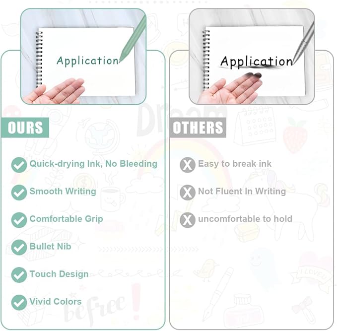 - 【FADE-RESISTANT & QUICK-DRYING INK】These retractable gel pens featuring premium and reliable ink dries super quickly, which won't fade or smudge easily during writing; the rollerball ink dries quickly that help you complete work and study neatly and efficiently. And each pen is sealed with wax to prevent ink from drying.