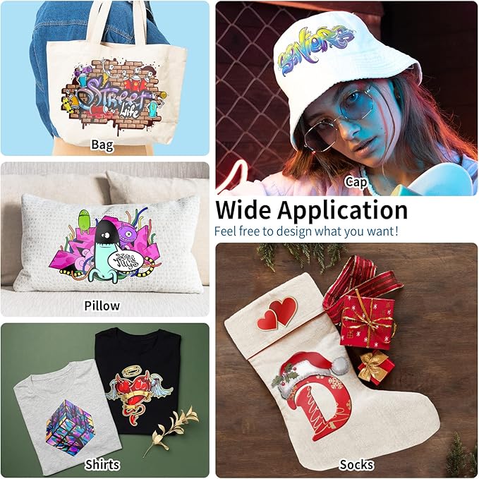 - 【Wide Compatibility and Great Application】JOYCUT DTF transfer film is fit with Epson, Sublimation and all DTF printers, applicable to all color and all material fabrics, such as cotton, polyester, cotton blend etc. You can make your designs on your clothes, canvas shoes, t-shirts, bags, coats, hats, pillows, aprons, handbags and other fabrics.