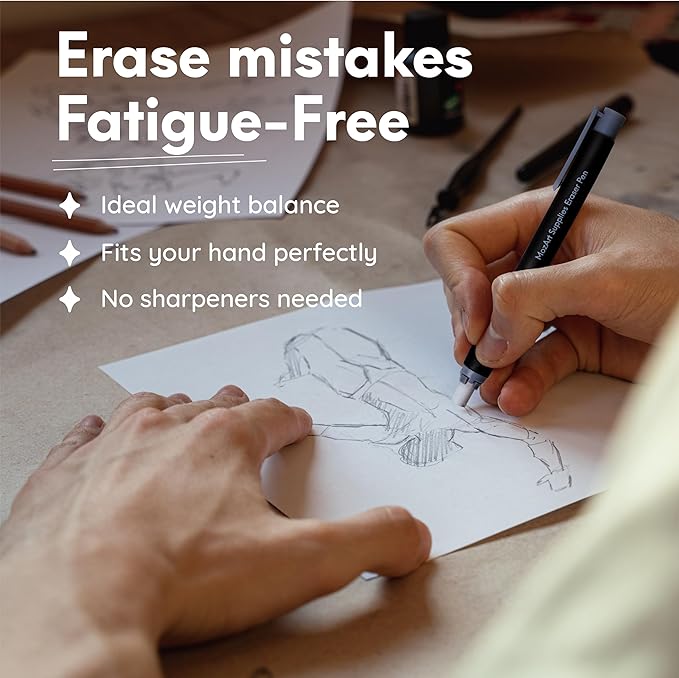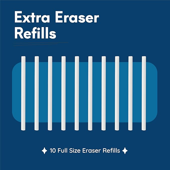 Mozart 2 Eraser Pen with 10 Jumbo Eraser Pen Refills Set, Easy to Use for Mechanical Pencils, Effective for Sketch, Architecture, Drafting, Art, Drawing Supplies.