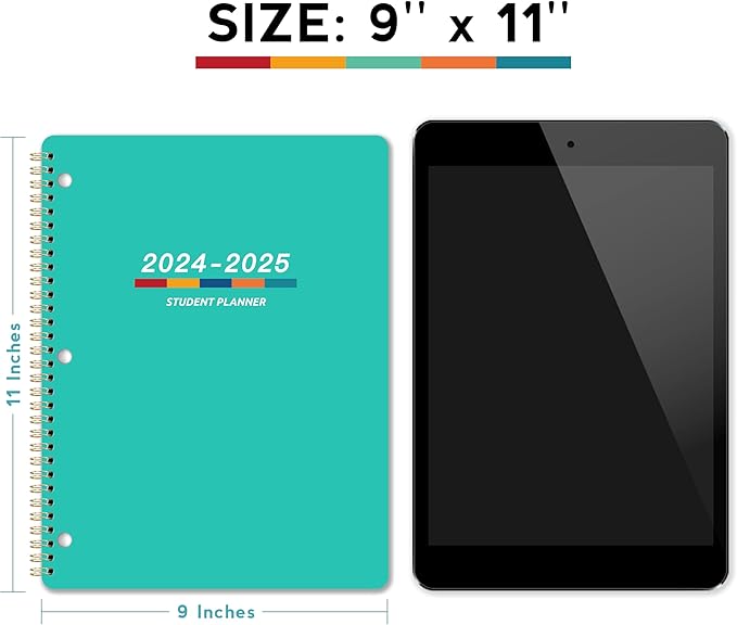 - Student Planner 2024-2025 - This student planner is for academic school year, July 2024 - June 2025, 11" x 9", weekly lesson planner with planning stickers, printed monthly tabs, week's goals, notes, holidays reminder, calendar reference and strong gold twin-wire binding, perfect organizer for students.