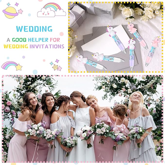 Chinco 12 Pieces Retractable Unicorn Pens 4-in-1 Multicolor Ballpoint Pen Unicorn Candy Party Favor Colored Ink Mini Party Favors for Girls Kids Classroom Prizes Birthday Gifts(Fat Unicorn)