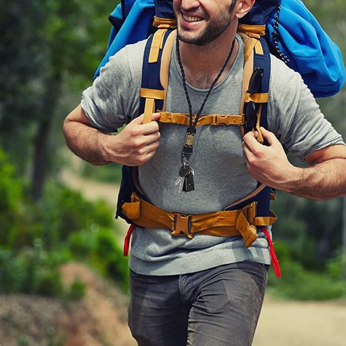 - 【Widely Used】As a cool neck lanyard key chains, you can connect your keys, ID badges, camera, flashlight, wallet, whistle and etc. You can also remove the parachute rope, which can be used to tie shoes, hang clothes, fix things, and even tent lines. You can easily and confidently enjoy any outdoor activities!
