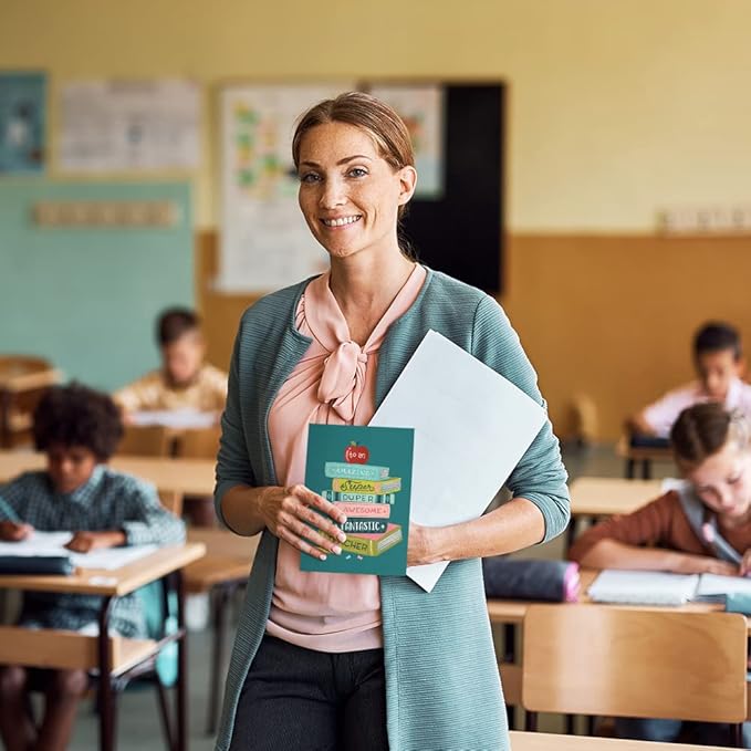 - Inside Greeting: [blank] | Cover Greeting: To an amazing super duper awesome fantastic teacher. These cards are beautifully designed inside and out. Let the inside cover art enhance your handwritten message. Envelopes are printed with matching designs. Easy to write on with any pen.