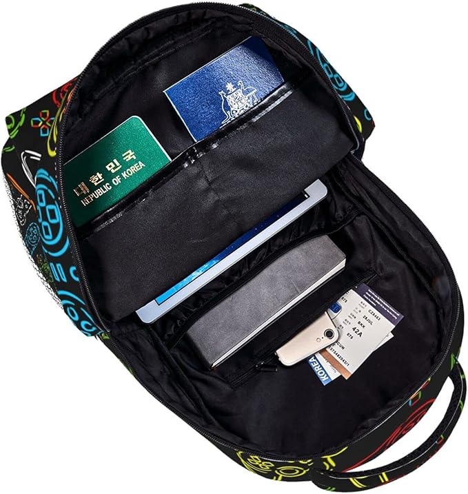 Fiokroo Game Joystick Colorful Silhouettes Backpack School Bag For Students Teens Men Women Laptop Backpacks Travel Daypack Bag With Multiple Pockets