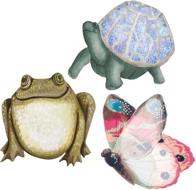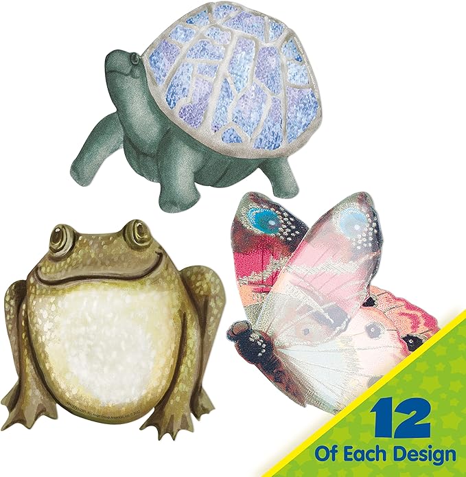 - Comes with 36 decorative classroom cutouts (12 each of 3 designs: frog, butterfly, and turtle)