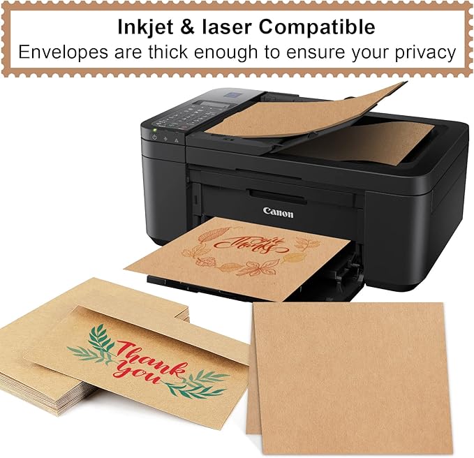 - Print custom: These Brown Blank Card inside and out. These envelopes are suitable for printing. You can solve these problems with a laser or an inkjet printer. Blank cards and envelopes can be printed on digital and offset commercial printers. There is no need to worry about smudging or paper jamming, as these Blank cards and envelopes are compatible with most printer models.