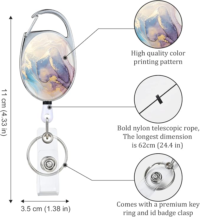 - 【Exquisite Patterns】Double-sided high-quality color printing retractable badge holder with various exquisite patterns such as marble, flowers, landscapes, etc.