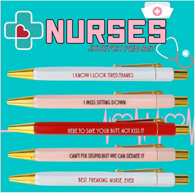 - 𝑮𝑰𝑭𝑻: Searching for the perfect gift that truly captures the essence of a nurse's dedication and sense of humor? Look no further than this 5-count set of Jxueych Funny Pens. Each pen is carefully crafted with love and thoughtfulness, making it an ideal present for birthdays, graduations, or just to show appreciation to the nurses in your life. Give them a gift that not only makes them laugh but also brings joy and positivity into their stressful work environment.
