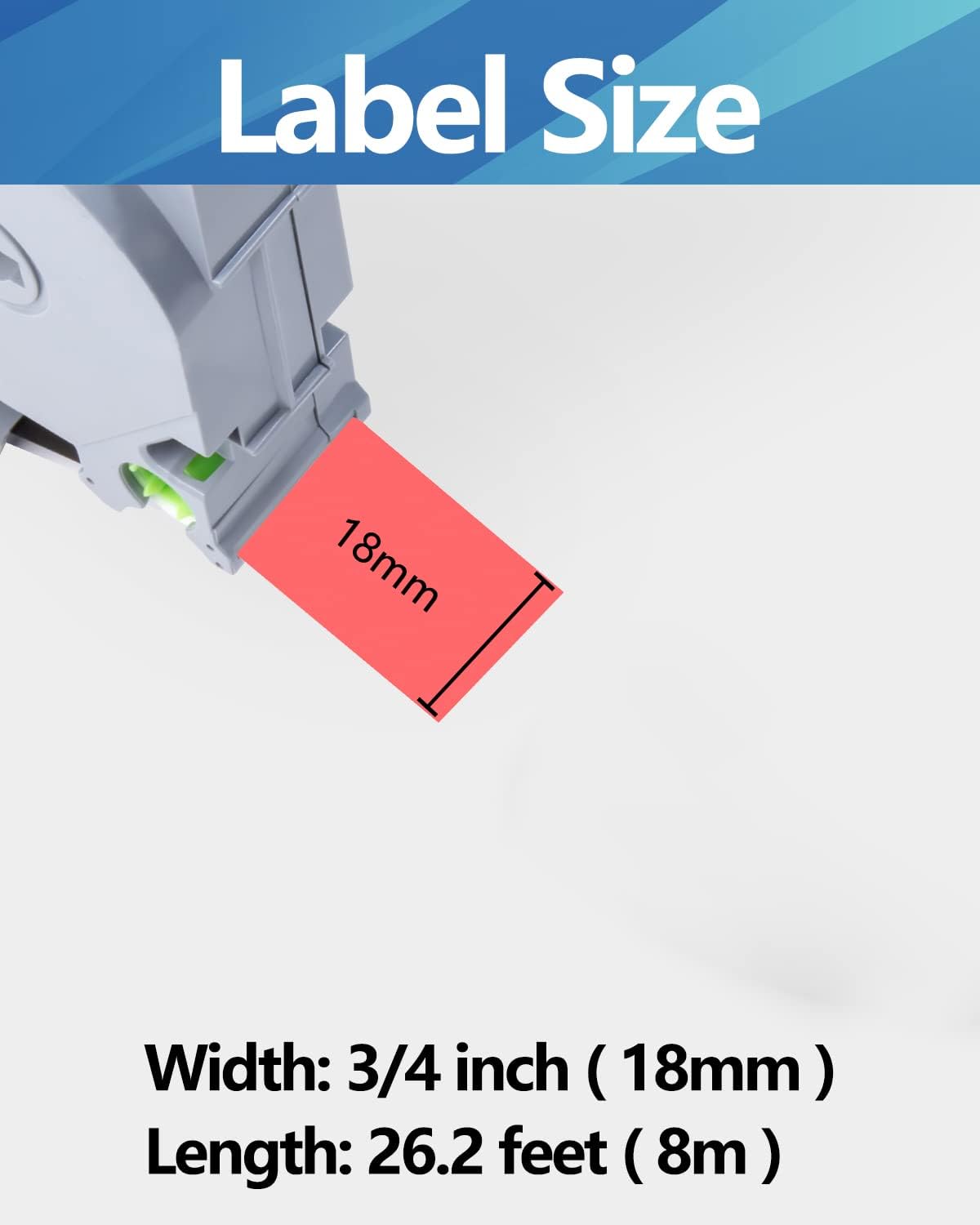 - Versatility: The tze 18mm tape with standard adhesive that is designed to stick to a variety of surfaces, including organizing files and folders, labeling storage containers, making it ideal for labeling items both indoors and outdoors