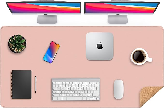 Leather Desk pad Protector, Large Desk mat with Natural Cork & PU Leather,Mouse pad,Non-Slip Office Desk Mat,Waterproof Desk Writing Pad for Office and Home (47in*23.7in, Pink)