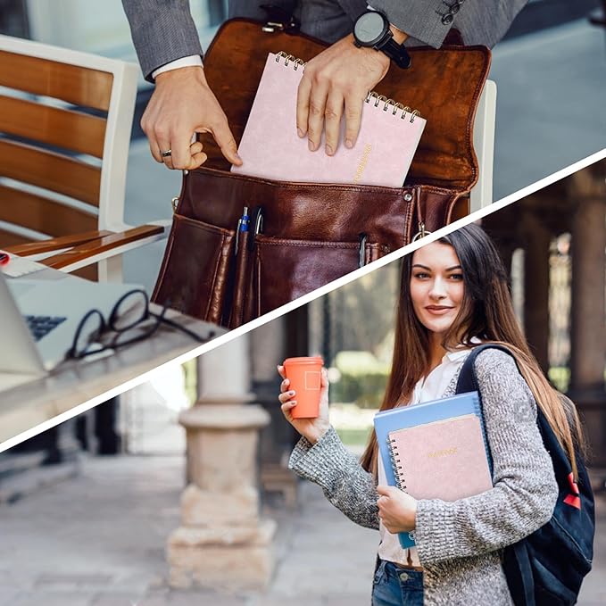 - 【Fashionable Cover】: This hardcover spiral notebook use the currently popular suede cover, which is soft to the touch, similar to the feel of flipping fur, with a frosted texture. The cover size is slightly larger than the size of the inner pages, which can protect the inner paper well. Cover size is 8.5"*6.34"