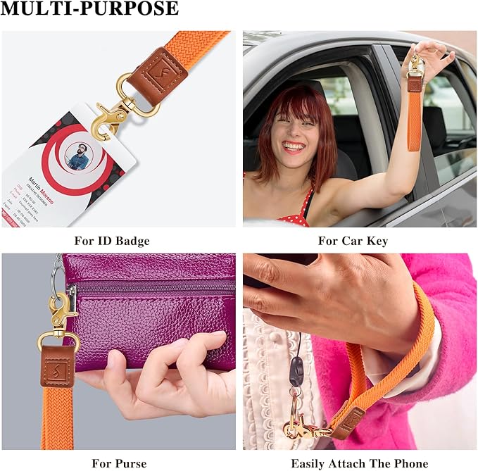 - Excellent Materials: Our wristlet key lanyard is light and strong, not easy to break or fade, and can provide you with a long-lasting user experience.This wristlet keychain for women is made with braided nylon and genuine leather is skin-friendly, has a quality zinc alloy metal wristlet strap key loop make it more solid and sturdy, can maintain long-term use to keep your wrist lanyard for keys, ID badge, or other essentials secure,suitable for long time wear