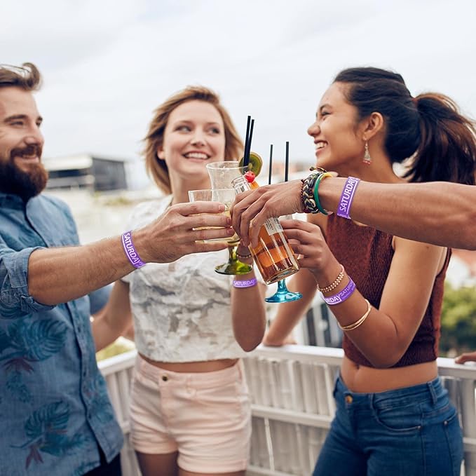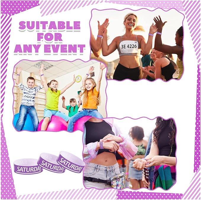 Henoyso 600 Pcs Saturday Paper Wristbands Event Wristbands Paper Bracelets Wristbands Numbered Waterproof Party Wristbands for Events Day of The Week(Purple)