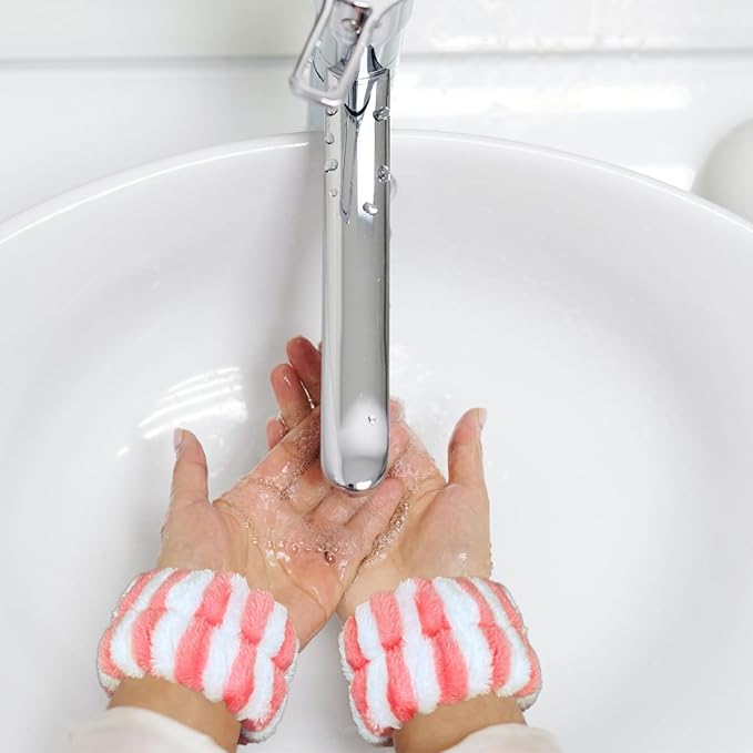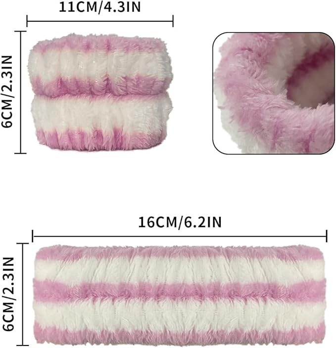 - Practical features: These wristbands are soft and comfortable enough, the fluffy material absorbs water easily, helping to prevent water from running down your arms when washing your face, making them a must-have for skincare lovers