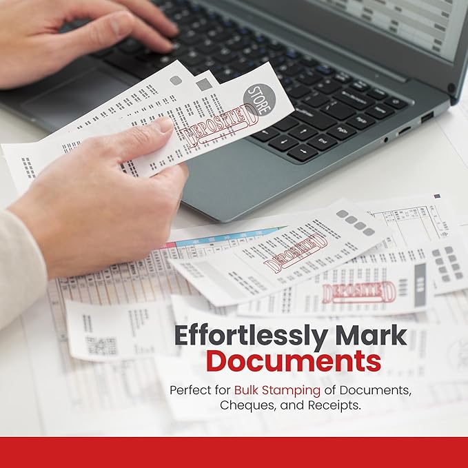 - Simplify Your Workload: The self-inking technology allows quick stamping when marking checks or other financial documents as "DEPOSITED." The office stamp is easy to use and requires minimal pressure to produce a clear, legible impression.