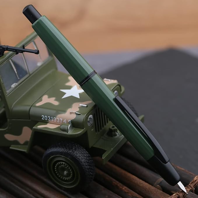 Majohn A2 Press Fountain Pen Extra Fine Nib with Box, Retractable Green Resin Ink Pen with Converter Writing Set (Black Clip Version)