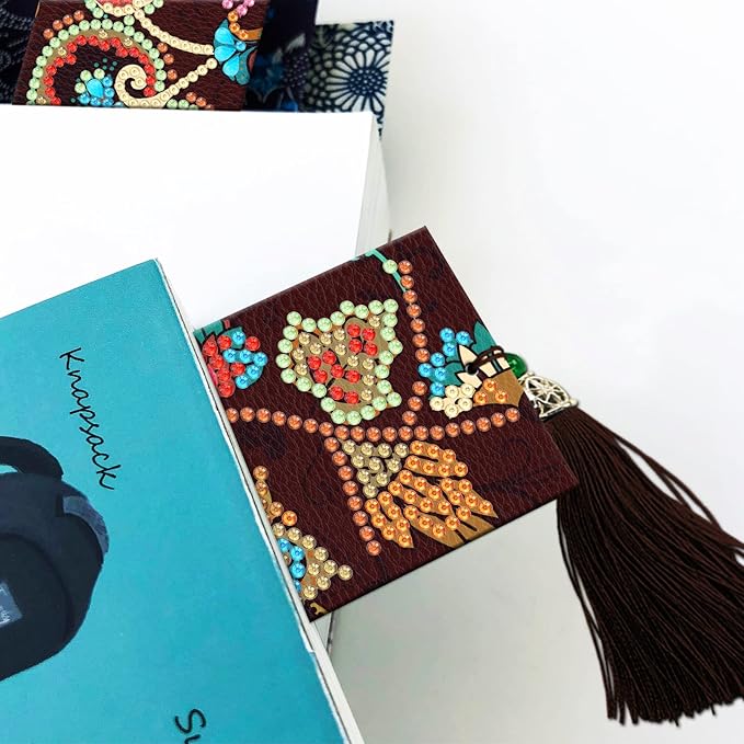 - Unique and Special Design: 5D DIY diamond painting bookmark with nice designs. Bookmark are made of faux leather with tassel
