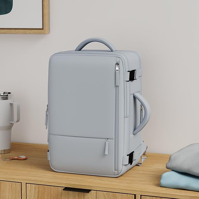 - 【Large Capacity and Multi Pockets】Carry on backpack with large storage capacity and two extra toiletry bags. Multiple zippered pockets give you plenty of storage space, including a front pocket, waterproof section, main compartment, separate laptop compartment, and anti-theft pocket on the back. In addition, this traveling backpack also has a mesh slip-in pocket with elastic closure on the left side for a bottle or an umbrella