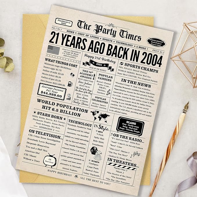 21st Birthday Card, 21st Birthday Decorations for Her Him, 21st Birthday Gifts for Daughter Son, Back in 2004 Birthday Card