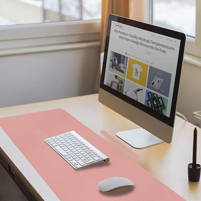 Boutilon Leather Desk Pad 24"x 14" Non-Slip Mouse Pad,Office Desk Mat,Waterprooft PU Leather Desk Blotter,Desk Pad Protector,Desk Writing Pad for Home Office Decor (S-Pink)